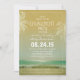 Palmeiras, Convite para Festas de noivado do Mar das Ondas de Praia. Bonito elegante e simples com fontes manuscritas e fundo de papel antigo com paisagem sazonal.