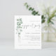 Um valor para o alternativo do ORÇAMENTO em tamanho menor de 4,5 x 5,6" de semirbrilho de 110 lbs, que é de espessura semelhante a um cartão postal (no entanto, não é adequado para uso como cartão postal). OBSERVE QUE HÁ UM convite por folha Orçamentária Eucalyptus Script Festa de noivado Invitation. Estilo botânico minimalista, com verde-aquarela fluindo para o lado esquerdo e texto para a direita. Um script manuscrito definido para a Festa de noivado e o resto do texto que você pode personalizar facilmente.