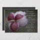 Ele propôs e você aceitou e disse SIM! Você está noiva de se casar e é hora de comemorar! Convide os convidados para uma celebração com o bonito Convite à Festa de noivado de Charm de setembro, a Rosa. Esta festa de noivado botânica personalizada e natural apresenta uma fotografia macro floral de perto de um florescimento roxo e rosa de setembro Charm com pequenas gotículas de água.