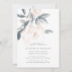 Convites elegantes, sutis para festas de noivado florais, que incluem flores cor-de-rosa, palha, pinceladas, e folhagem de cor suave. Personalize com seus detalhes de festa de noivado em letras de cinza.