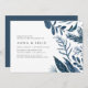 Nosso convite para festa de noivado do Wild Azure apresenta seus detalhes de festa de noivado, acentuados pela folhagem de cor d'água de inverno em tons gelados de azul.