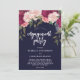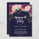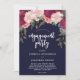 Um belo convite de festa de noivado floral cor-de-rosa e arroxeada com fundo marinho, com sotaques verdes e um marinho de coordenação inverso. Fácil de editar ou excluir os campos de texto disponíveis para personalizar as informações com seus próprios detalhes para um convite personalizado e profissional. Muitos itens correspondentes nesta coleção de boho. Por favor, visite meu compro para ver a faixa de cheios e criar um conjunto de itens usando este adorável design.