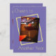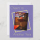 Imagem de um coquetel em fundo roxo com impressão amarela e detalhes da festa no verso.