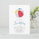 Convite de festa de praia com uma bola de praia colorida perfeita para festas de verão.