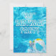 Festa de aniversário de 30 anos de natação convidada com coquetel e esfera de praia em água turquesa.