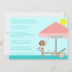Este convite de festas de piscina 5x7 tem um tema de piscina giro. Há um guarda-chuva enorme com uma cadeira de salão, um rádio, e uma garota segurando uma bola de praia. Você pode personalizar isso facilmente com suas próprias informações.