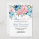 Tem flores rosas e azuis no topo com texto na parte inferior que você pode editar