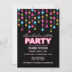 Luzes coloridas de neon decoram este divertido convite para uma noite na cidade para celebrar o futuro noivo. Um convite perfeito para qualquer Festa de solteira que te leve a dançar a noite toda. A cada luz colorida foi dado um efeito de brilho - que você pode aprimorar ainda mais, acoplando pequenos cristais de loja de artesanatos grudentos - adiciona brilho e brilho extra!
