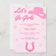 Convite à Festa de solteira de Cowgirl rosa Comemore a noiva a ser com este convite de festa de solteira, divertido e temido pela vaquinha! Adicione texto personalizado para personalizar para sua noiva de vaquinha! Os itens da Garota Rosa Correspondente podem ser encontrados na Coleção de Festas de solteira da Garota-de-Vaca Rosa