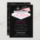 O icônico sinal de "Bem-vindos a Las Vegas", design, foi exibido com a leitura "Party in Las Vegas". Texto retrorativo do estilo para o nome da noiva e o nome do casino. O backer de padrão retroestrelado é opcional. Cantos arredondados opcionais. Esquema de cor preto, rosa e cinza. Outras combinações de cores estão disponíveis.