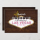 Uma versão atualizada do convite popular para festa de solteira de sinais de Las Vegas. Este tem um nome de evento editável e uma frente decorativa incluindo efeitos de iluminação, com todos os detalhes da parte de trás sobre uma textura moderna de grãos de madeira. Acentos cor-de-rosa, mas mais masculinos com madeira e tons escuros.