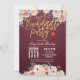 Modelo de Placa de Convite de festa de solteira - Letra Dourada Elegante de Festa de solteira com Fundo Vermelho Floral de Borgonha Vintage com Aquarela Floral. Um Design perfeito para o seu grande dia. Todo estilo de texto, cores, tamanhos podem ser modificados para ajustado das suas necessidades.