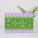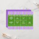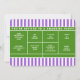 Convites criativos para festas ou eventos temáticos de tênis com uma quadra de tênis em um fundo listrado roxo.