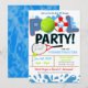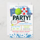 Faz um ótimo convite para celebrar uma festa de equipa de ténis na piscina das crianças, aniversário, final de época, final de verão, final do ano letivo, ou para qualquer outra ocasião divertida de festa na piscina com desporto!