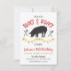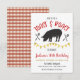 Modelo de Convite de Churrasco de Porco Editável. Use este divertido convite de festa de torra e churrasco de porco para qualquer festa! Ótimo para Formaturas, Aposentadorias e Aniversários!