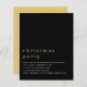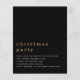 Mínimo Dourado Convite de festas de Natal Negro. Um alternativo de 4,5 pol x 5,6 pol com preço inferior. Disponível em um STOCK DE CARTÃO SEMI GLOSS 110 lb, que é a opção padrão (recomendada para convites), OU um STOCK DE PAPEL THINNER SATIN FINISH 80 lb (ideal para gabinetes). Os envelopes são um extra opcional e são ligeiramente maiores que o tamanho da placa. Negro clássico e ouro com branco com este design totalmente personalizável. O cabeçalho é maior em na moda em minúsculas com os detalhes abaixo.Personalize facilmente o texto e pode ser alterado para qualquer cor de sua escolha através da opção personalizar mais.
