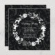 Festa Feriada Feriada Fúria de Natal Bonita com uma folha branca, rena, doce de Natal, sininho, gengibre, cana-de-açúcar e anjo em fundo preto úmido para um toque divertido e elegante. Sacudir nosso convite moderno & chic para ver uma correspondência de volta para um toque especial extra.