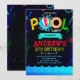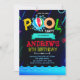 Convite para festa na piscina com brilho de neon