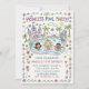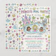 Convite de Aniversário Princess Pool, disponível para download instantâneo para uso digital e impressão. Este design personalizável apresenta um tema encantador de festa de princesa na piscina com elementos divertidos como um castelo, piscina, crianças se divertindo, palmeiras, estrelas, confetes, corações, nuvens, borboletas e muito mais.