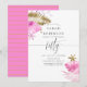 Folhagem tropical em aquarela com 50º convite de aniversário com tipografia manuscrita com folhas rosadas em flamingo, rosa e folha de ouro, desenhadas para serem rápida e facilmente personalizadas de acordo com as suas especificações de evento.