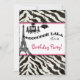 Um design brilhante e divertido usando a impressão Zebra de um lado e a impressão Leopard no outro! Há um antigo candelabro francês e a Torre Eiffel com as palavras, "Oooooooh lala, é uma Festa de aniversário!" A obra de arte usada para criar este convite foi pintada à mão por Audrey Jeanne Roberts. Disponível em uma grande variedade de paletas coloridas brilhantes, este é rosa quente. VOCÊ TAMBÉM PODE APROVEITAR: