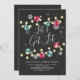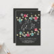 Vamos Feriado Obtenha Convite de festas coquetel com cordas de natal com ornamentos vermelhos e verdes e flocos de neve colocados em um popular fundo preto de quadro negro. Sacudir nosso convite exclusivo para ver uma correspondência de volta para um toque especial extra. Convite perfeito para um bairro se reunir, festa de escritório, festa de coquetel de escritório ou festa de Véspera de ano novo,
