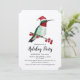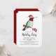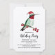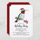 Um convite para festas bonitinho com um beija-flor arruinado vestindo um chapéu de Papai Noel em um fundo branco. Apenas adicione seu nome! O tamanho e a cor da fonte podem ser alterados clicando em "Editar este design".