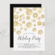 Elegante Convite de festas de Natal sobre um fundo elegante com um campo de flocos de neve dourados. Sacudir nosso convite exclusivo para ver uma coordenação de volta para um toque especial extra. Convite perfeito para uma vizinhança, festa de escritório, festa de coquetel de escritório ou festa de natal,