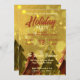 Experimente a magia do feriado com o nosso convite elegante e festivo! Colocado contra um pano de fundo de brilho dourado, este convite é certamente para chamar a atenção. O texto moderno e na moda, renderizado em uma mistura de fontes brancas e amarelas, é totalmente personalizável. O convite é enfeitado com uma ilustração encantadora de árvores de Natal vermelhas e douradas metálicas no fundo, acrescentando um toque de calor nas férias.