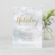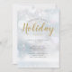 Um convite de festas moderno que apresenta flocos de neve em queda em fundo de neve com uma saudação de Natal definida num elegante texto dourado. Personalize adicionando os detalhes da festa de Natal. Projetado por Thisnotme©