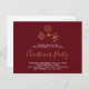 Um postal de convite de festas de Natal com uma ilustração de flocos de neve de ouro rico com formas cristalinas elegantes. Um fundo vermelho escuro.