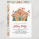 Convide a família e os amigos para a sua festa de férias com este convite de festa divertida e festiva. Ele apresenta uma ilustração aquosa de uma casa de pão de gengibre com canas doces vermelhas e verdes com padrão de feriado equivalente. Os textos são perfeitamente editáveis para todos os efeitos. Personalize adicionando evento, data, hora, local e outros detalhes. Você também pode mudar o padrão traseiro para uma foto ou qualquer outra imagem. Esta festiva casa de pão de gengibre está disponível no convite de festas de Natal em outros estoques.