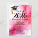 Fundo aquoso de lavagem rosa-quente vibrante com texto branco e convites para festa de formatura de script, perfeito para uma sofisticada e sofisticada mosquiteira!