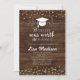 Convite à Festa de formatura de Enfermagem Dourada russa com fundo de madeira rústica perfeito para a sua festa de formatura.