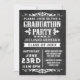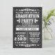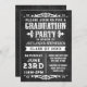 Felicite o formando com um evento festivo. Cinzas de carvão preto rústicas únicas e fundo preto com letras brancas de aspecto de giz e decos temáticos antigos. Convite festa de formatura para rapazes ou raparigas, tema de excelente para uma celebração de churrasco, biscoito ou formando ao ar livre.