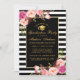 Cartão de Convite para Festas de formatura Floral Dourada, cor-de-rosa-d-água, com riscas brancas e pretas