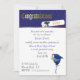 Convite para festas de formatura elegante, feito com fundo branco e gráficos de um balão azul festivo e de ouro, com um boné de cartão-mortarboard, no canto inferior direito do convite. Uma bonito cor damasco floral azul, por cima, tem Parabéns de leitura de texto gráfico de tom dourado e um pergaminho de diploma tem texto personalizado de tom dourado lendo o ano. Personalize o ano e o resto do texto do convite para atender às necessidades do seu partido.