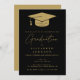 Este convite de festa de formatura elegante preto e ouro pode ser personalizado com os detalhes de sua celebração. Projetado por Thisnotme©