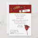 Convite de festa de formatura elegante, feito com fundo branco e gráficos de um balão vermelho festivo e dourado, com boné de placa-mãe, no canto inferior direito do convite. Um banner vermelho e dourado, no topo, tem texto gráfico lendo Classe de e um diploma rolando tem texto vermelho personalizado lendo o ano. Personalize o ano e o resto do texto do convite para se adequar às necessidades do seu partido.