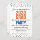 Classe de 2020 - Anúncio de Convite à Festa de formatura - Azul e Laranja Convidem todos os seus amigos e parentes para a casa aberta do partido de graduação com estes anúncios de graduação personalizáveis de estilo moderno e legal! Personalize seus convites selecionando e alterando cores de texto e borda de fundo. Adicione sua foto ou mapa à festa no verso.
