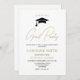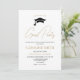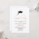 Convite moderno à Festa de formatura. Apresentando bonés preto de papelão em queda, e um modelo de texto moderno que é fácil de personalizar.