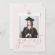 Cor-de-rosa | Convite simples moderno para Festas de formatura. Este convite para festa de formatura na moda apresenta um roteiro elegante de ouro rosa e uma foto para personalização na frente. O verso inclui um boné de formatura dourado rosa com texto para personalização. A foto foi projetada para se parecer com um instantâneo vintage enquanto ainda é na moda para o formando de hoje.