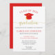 Anuncie sua festa de formatura com este simples convite vermelho e ouro. Este convite apresenta um boné vermelho com letras douradas. Personalize o texto para compartilhar todos os detalhes de sua festa de formatura.