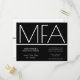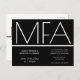 Este é um cartão postal de convite para festas de formatura AMF. Este convite minimalista é preto e branco. Todas as palavras e ambas as cores podem ser personalizadas. Grau MFA Festa de formatura Negra Convite Feriado Design | ©Melissa Patton