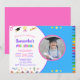 Chamada de festa de formatura de fotos pré-escolar para garotas bonitas e roxas.