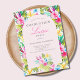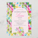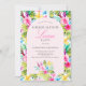 Convite de festa de formatura tropical rosa. Fácil de mudar o texto. Bonito padrão floral de aquarela.