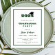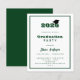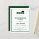 Um convite moderno e na moda para uma festa de formatura. Para ele e para ela. Fundo branco, texto verde e um quadro. Um boné de formatura preto. 1 folha = 1 convite impresso de borda a borda.