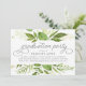 O convite para festas de formatura botânica verde moderno apresenta uma borda superior e inferior de verde-aquarela em tons de floresta e verde-férn, com sotaques de tipografia decorativa e letras de cinza enfumaçado. Personalize com o texto desejado do convite de festa de formatura usando os campos modelo. Concebido para coordenar com o nosso convite à Wild Meadow e a nossa coleção de artigos de papelaria.