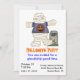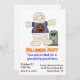 O convite para a festa do Dia das Bruxas. Gráficos country bonitos de uma múmia vestindo uma t-shirt do Halloween e ao lado de uma lápide. Um grande sucesso para as crianças. Personalize todo o texto para o seu pequeno evento de Halloween de monstros.