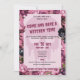 Ponha o tom para uma noite maravilhosamente glamourosa com este convite de festas de Dia das Bruxas. Apresentando um crânio cor-de-rosa pingando enquadrado por florais de peônias ousadas, este convite de dupla face combina vibrações góticas com elegância feminina. Perfeito para festas de Halloween, chás de panela góticos ou qualquer celebração de feitiçaria, esta design de na moda vai impressionar seus convidados e deixá-los animados por uma noite para se lembrar. Personalize com seus próprios detalhes e torne-o exclusivamente seu!